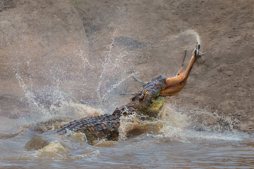 The second scene depicts 12Thomson's gazelles attempting to cross Mara River and being intercepted by crocodiles, 4 gazelles were killed. Seeing a half-ton Neil crocodile taking on a Thomson's gazelle in the water and split it into two pieces in one bite was shocking and fearful, the power and brutality it delivered was unbelievable.