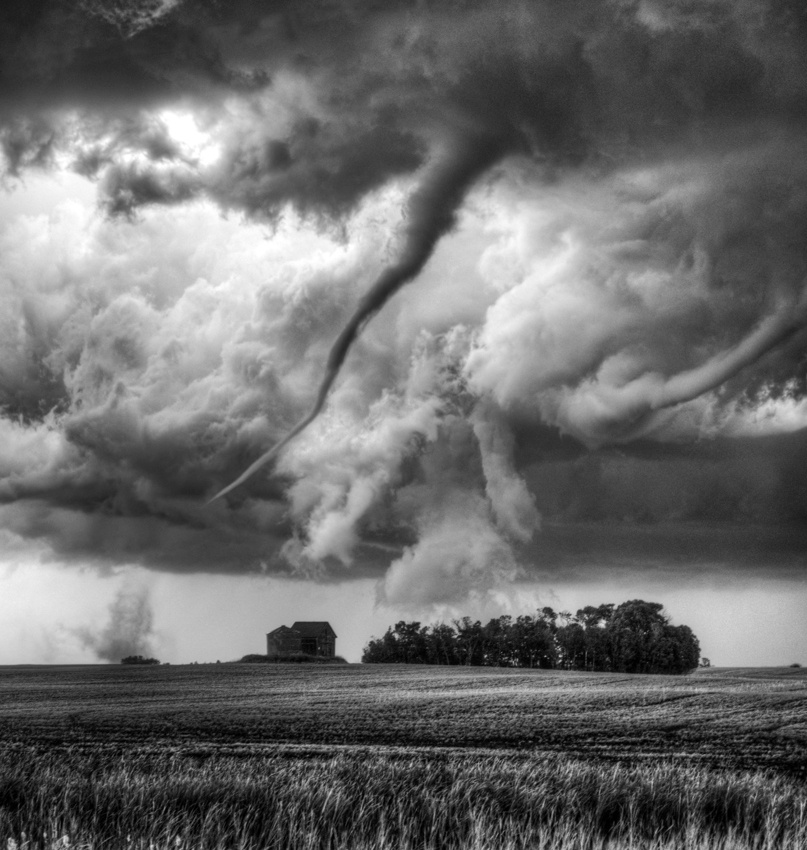 When conditions are right, tornadoes can form from these storms. Generally, tornadoes are brief and are rarely photogenic. Poor contrast and variable/low light conditions make capturing a tornado in an artful way rare indeed. Nevertheless, a combination of skill, patience, (lots of driving) and right-place-right-time luck can produce some amazing images.